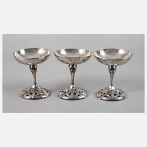 um 1915, gestempelt Straußenmarke OX I/O, Alpacca versilbert, mit Bandmotiven durchbrochen gestalteter Fuß, dreiarmiger Kuppenansatz, welcher eine gewölbte Schale trägt, geringe Gebrauchs- und Altersspuren, H 12 cm.