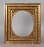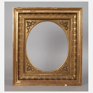 um 1810, ca. 7,5 cm breite, steigend profilierte, mit Messingapplikationen belegte und vergoldete Holzleiste, Gehrungen geschnitten, eingelegt ovales Passepartout, teilweise Verluste, Falzmaß 38 x 32 cm.