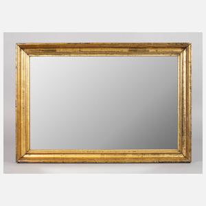 um 1860, Rahmen aus ca. 5 cm breiter, steigend profilierter versilberter Holzleiste, Gehrungen geschnitten, eingelegt Spiegelglas, Sichtmaß ca. 38 x 59,5 cm.
