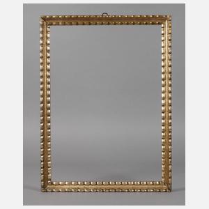 19. Jh., ca. 3,5 cm breite, steigend profilierte und versilberte Holzleiste, Gehrungen geschnitten, leichte Erhaltungsmängel, Falzmaß ca. 40 x 54 cm.