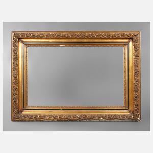 2. Hälfte 19. Jh., ca. 20 cm breite, profilierte, gestuckte und vergoldete Holzleiste mit Rosenrankendekor und schmalem schwarzen Lackstreifen, ein Rand mit starken Fehlstellen, Falzmaß 80,5 x 126 cm, Gesamtmaß 118 x 167 cm.