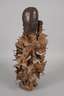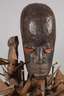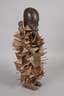 Kongogebiet, 20. Jh., der Volksgruppe der Yombe aus dem Chilango-Tal zugeordnet, stehende Figur aus braunem, schwerem Hartholz, außer am schwarz gefärbten Kopf vollflächig mit Nägeln und Blechen verziert, Augen rot gefasst, im Bauch mit verglastem Fach für Reliquien, H 60 cm.