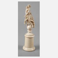 wohl Erbach, um 1900, ungemarkt, Mariengestalt mit Christusknaben auf einer Kugel über getrepptem Rundsockel montiert, winz. best., Altersspuren, H 17 cm.
