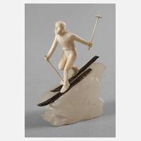 wohl Erbach, um 1920, ungemarkt, naturalistisch gestalteter Onyxsockel mit Skifahrer aus Elfenbein, Altersspuren, H 7,5 cm.