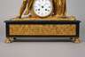 um 1830, rückseitig und auf Ziffernblatt gemarkt, klassizistischer Sockel aus schwarzem Onyx, mit umlaufendem Figurenfries, Bronze feuervergoldet und fein ziseliert, partiell poliert, Pendulenwerk mit Halbstundenschlag auf Glocke, Pendel mit Fadenaufhängung, emailliertes Ziffernblatt mit römischen Zahlen und drei restaurierten Fehlstellen, sonst guter Zustand, Werk funktionstüchtig, H 45 x B 40 x T 15 cm.