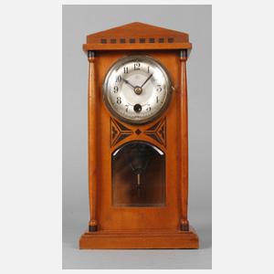 um 1910, Gehäuse aus Kirschbaum, partiell dunkel gebeizt, mit facettgeschliffener Scheibe, Werk ohne Schlag, Werk läuft, Z 1-2, H 24 cm.