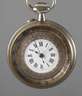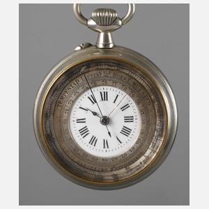 Spanien, um 1900, Nickelgehäuse, Werk mit Zylinderhemmung, darüber separates Barometer, makelloses Emailziffernblatt mit römischen Zahlen sowie Anzeige des Luftdrucks, drehbare Lünette zur Höhenmessung, Uhrwerk intakt, Funktion des Barometers nicht geprüft, Lünette mit Deckglas locker, Z 2-, D 55 mm.