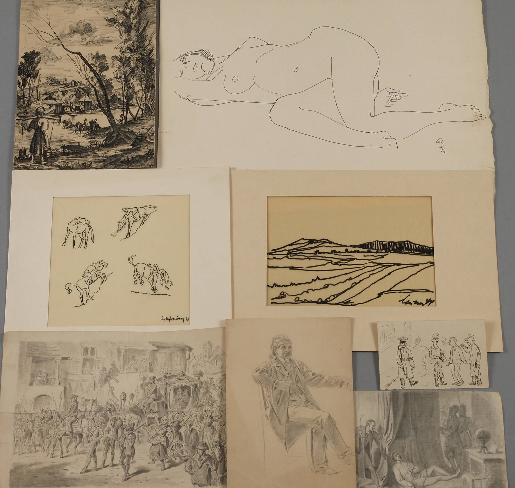 acht Blatt, unterschiedliche Techniken, 20. Jh., sechs Blatt signiert, einmal signiert „Gustav Zafaurek“, unterschiedliche Erhaltungen, Blattmaße max. 38 x 27 cm.