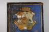 um 1920, Herstellervermerk Pyro-Email sowie Boos & Hahn Ortenberg Baden, hochrechteckiges flaches Schild, mehrfarbig emailliert, mit stilisierter Wappenkartusche und Firmenumschrift, vier originale Bohrungen, stärkere Erhaltungsmängel, Z 3, Maße 98 x 57 cm.