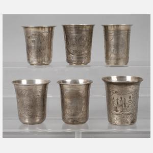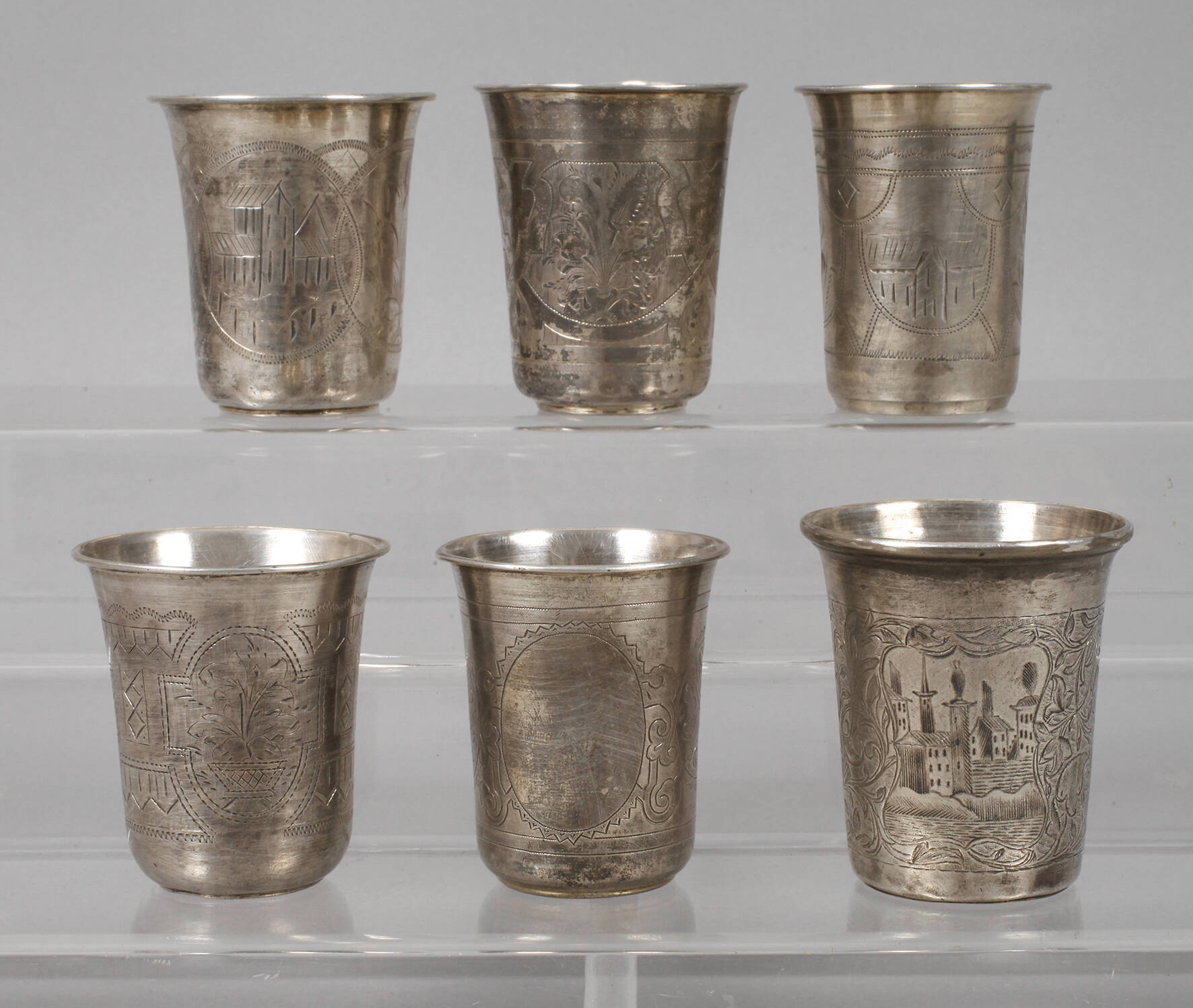 2. Hälfte 19. Jh., verschieden gestempelt und graviert, teilweise gedellt, H max. 7,5 cm, G ca. 332 g.