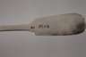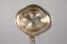 datiert 1877, Silberstempel 84 Zolotniki, Stadtmarke Moskau Georg der Drachentöter, kyrillische Beschaumeistermarke "L.S", Meister "J.L" im Rechteck, geschweifte Laffe mit verstärktem Rand, geometrisch durchstochen, Reste alter Vergoldung, altersgemäßer Zustand, L 20 cm, G ca. 53 g.