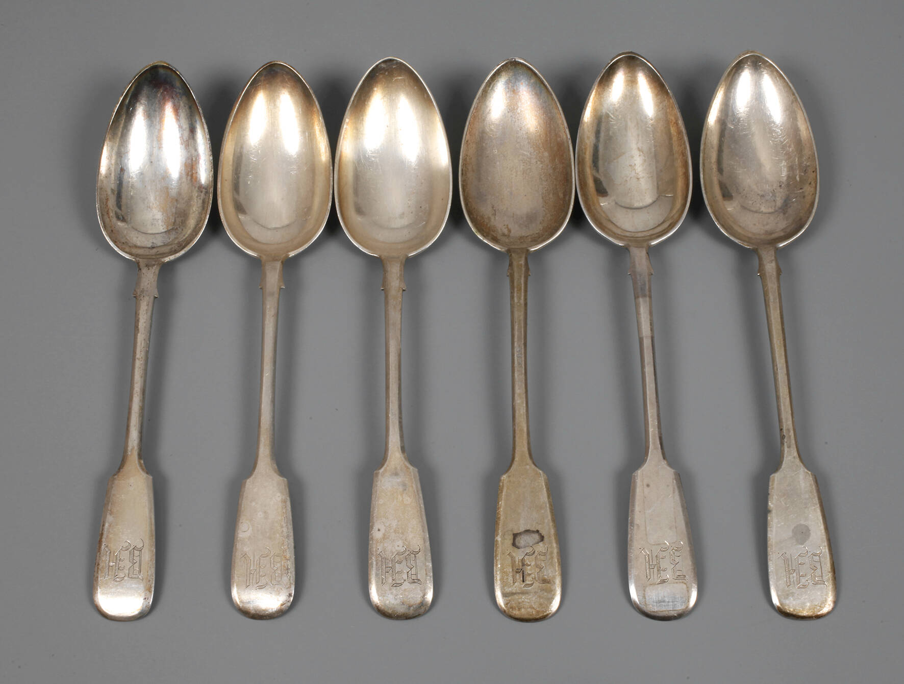 um 1900, Kokoschnikmarke mit Silberstempel 84 Zolotniki, kyrillische Meistermarke IM im Rechteck, Griffenden mit graviertem Besitzermonogramm BH, geringe Gebrauchs- und Altersspuren, G ca. 361 g.
