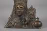 um 1900, ungemarkt, Bronze braun patiniert, halbplastische Darstellung der Muttergottes als Himmelskönigin, den ebenfalls bekrönten Christusknaben zu ihrer Linken, mit Reichsapfel und im Segensgestus erhobener Hand, rs. Montierungsreste, Maße 13 x 11 cm.