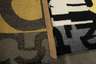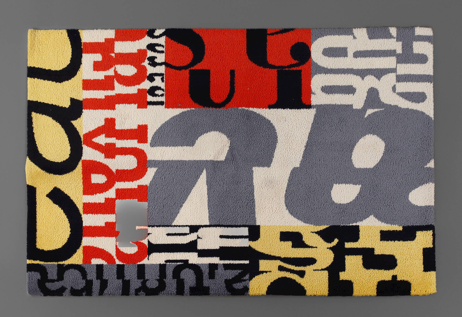 1970er Jahre, abstrahierte mehrfarbige Lettern über cremefarbenem Fond, Altersspuren, Maße ca. 201 x 139 cm.