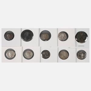 Zehn Münzen der Antoninen und Severer