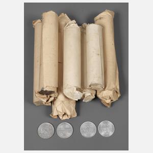 7 Rollen Alu-Geld, darunter 200 Mark 1923, 50 Pfennig 1920 und 1922, ungezählt.