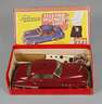 Modell 5311, 1952-1960, gemarkt, bezeichnet, Patentangabe und Zusatz Made in U.S.-Zone, Blech lackiert, Kunststoff und Nickelbeschläge, dunkelrote zerlegbare Limousine mit Batteriebetrieb, vor- und rückwärtsfahrend, zwei Geschwindigkeitsstufen, Handschaltgerät mit Lenkrad und zwei Druckknöpfen, Kühlerverzierung als Richtungsanzeiger, Celluloidscheiben und Gummireifen, dazu minimal lädierter Firmenkarton für vergleichbares Modell 5380 mit Schrauben- und Steckschlüssel für die Reifenmontage sowie Bedienungsanleitung, Funktion nicht geprüft, minimal bespielter Zustand, mit einem flugrostigen Zierblech, Fernlenkwelle und tragbares Batteriegehäuse fehlen, L 22 cm, Maße Karton 23 x 14 x 8 cm.