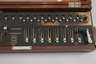 um 1910, schweres, langrechteckiges Mahagonigehäuse mit eingelegtem Firmenschriftzug, Deckelinnenseite mit Bedienungsanleitung, das Rechenwerk aus Bronze, teils vernickelt bzw. geschwärzt, Alters- und Gebrauchsspuren, L 60 cm.