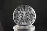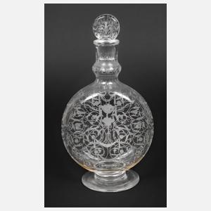2. Hälfte 19. Jh., in der Art von Lobmeyr Wien, ungemarkt, farbloses Glas, Scheibenfuß, Nodus, flacher Korpus mit feinem Mattschliff, Rollwerk, Blüten und Festons, ebenfalls abgeflachter Deckelknauf, normale Gebrauchs- und Altersspuren, Höhe 27,5 cm.