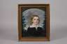 Bildnis eines den Betrachter anblickenden Jungen mit blondem lockigen Haar, umgeben von Blattwerk, vor Flusslandschaft, Pastell, um 1820, Pastell leicht berieben, hinter Glas gerahmt, Sichtmaße ca. 33,5 x 27 cm.
