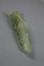 20. Jh., halb durchscheinende grüne Jade, beschnitzt und fein graviert in Form eines Drachenhaupts, L 9 cm.