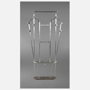 1950er Jahre, aus gebogenem Aluminiumrohr, die Bodenplatte gegossen, mit Hutablage und Schirmständer, Spiegel fehlt, Maße 180 x 90 x 15 cm.