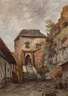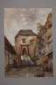 sommerliche Ansicht des Burgtors zur Burg Schreckenstein [Hrad Střekov] bei Aussig [Ústi nad Labem] in der böhmischen Schweiz, das altehrwürdige Gemäuer lockte in seiner wechselvollen Vergangenheit zahlreiche berühmte Besucher an, Alexander von Humboldt erwies der Burg seine Reverenz, Richard Wagner diente das Gemäuer als Anregung für seine Oper "Tannhäuser", besonders die Maler der (Spät-)Romantik wie Caspar David Friedrich (1774–1840), Ludwig Richter (1903–1884), Heinrich Dreber (1822–1875) und Ernst Gustav Doerell (1832–1877) setzten der Burg malerische Denkmale, die bekanntesten dürften Ludwig Richters "Überfahrt am Schreckenstein" bzw. "Aufsteigendes Gewitter am Schreckenstein" sein, Ludwig Richter und seinem Schülerkreis diente die Burg mehrfach als Ort des Zeichnens vor der Natur, fein erfasstes Aquarell, um 1858, rückseitig Studie eines Bauernhauses am Fluss, das Blatt stammt aus einem Konvolut mit zwei Darstellungen der Hänselmühle im Loschwitzgrund bei Dresden, wohl von gleicher Hand, siehe vorhergehende Positionen, geringe Montierungsspuren und Erhaltungsmängel, ungerahmt, Blattmaße ca. 32,5 x 23 cm.