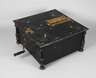 Ende 19. Jh., ungemarkt, geschwärztes Holzgehäuse mit gedrechselten Säulen, Messingmontierungen, originale Kurbel, ohne Platten, Funktion nicht geprüft, Erhaltungsmängel, Maße ca. 27 x 51 x 52 cm.