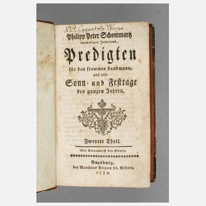 auf alle Sonn- und Festtage des ganzen Jahres, zweyter Theil, Augsburg bei Matthäus Riegers Sel. Söhnen 1779, Format 8°, 6 Blatt, 556 S., 10 Blatt (Verzeichnis), Rotschnitt, Halbledereinband der Zeit mit Rückenprägung, dieser etwas lädiert.