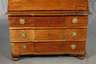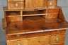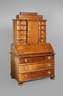 Nussbaum massiv, 2. Hälfte 18. Jh., dreiteiliger Korpus mit dreischübigem Kommodenunterteil, Schrägklappensekretär und zehnschübigem Aufsatz, Sekretär mit schlichtem Innenleben, drei Schübe aus Nadelholz (einer fehlt), die Schübe des Aufsatzes mit Zentralverriegelung, Schlösser und ein Schubkasten der Kommode erneuert, starke Alters- und Gebrauchsspuren, alter inaktiver Wurmbefall, rest.bed., Maße 190 x 127 x 65 cm.