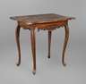 um 1760, Nadelholz massiv, reich beschnitzte Zarge auf leicht s-förmig geschwungenen schlanken Beinen, in brauner Bierlasur gefasst, unberührter Originalzustand, Maße 79 x 84 x 58 cm.