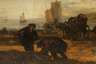 Fischer am Strand unter wolkenverhangenem Himmel, beim Leeren der Netze, lasierende, barocke Genremalerei in zurückhaltender Farbigkeit, Öl auf Holzplatte, unsigniert, rückseitig undeutliche Ritzung "... 1746" und altes Nummernetikett "No. 176" mit rotem Wachssiegel sowie zwei neuere Etiketten, hier einmal lesbar "Pieter van Bleeck den Haag 1764", restauriert, gerahmt, Falzmaße ca. 25,5 x 35,5 cm.