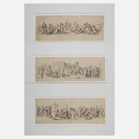 drei Blatt, jeweils vielfigürliche Kompositionen, teils mit Faunen und Elefant, vorhanden sind die Blätter 2, 3 und 4 einer Folge, Radierung, um 1700, in der Platte jeweils bezeichnet " F. Ertinger fc." und "P. Lafage in.", teils etwas fleckig und angeschmutzt, je in Passepartout freigestellt, Blattmaße ca. 12,3 x 34,5 cm. Künstlerinfo: dt. Zeichner und Graphiker (1640 Weil/Schwaben oder Colmar bis 1710 Paris), war tätig in Antwerpen, 1677-78 Meister der hiesigen Lukasgilde, lebt anschl. in Paris, soll auch in Rom tätig gewesen sein, Quelle: Thieme-Becker.