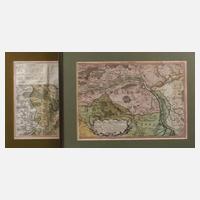 1.) Plan zur Schlacht bei Mainz im Jahre 1735, kolorierter Kupferstich, erschienen bei Homanns Erben in Nürnberg, im unteren linken Bereich prächtige Kartusche mit Beschreibung, Faltspuren, braunfleckig, unter Passepartout und hinter Glas gerahmt, Darstellungsmaße ca. 32 x 43,5 cm und 2.) Plan der Schlacht um Trier, zwei Felder mit Beschreibung in der Darstellung, kolorierter Kupferstich, 2. Hälfte 18. Jh., leichte Faltlinien, etwas braunfleckig, unter Passepartout und hinter Glas gerahmt, Darstellungsmaße ca. 32 x 46 cm.
