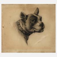 Bildnis einer Dogge, mit zum Betrachter gerichteten Blick, Graphit auf Pappe, in der Darstellung signiert "R. Elliot", rückseitig datiert "March 1831", leichte Erhaltungsmängel, Maße ca. 27 x 31 cm.