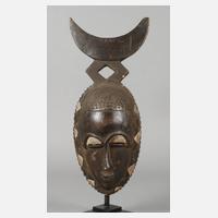 Liberia, 1. Hälfte 20. Jh., der Volksgruppe der Dan zugeordnet, sogenannte Feuermelder-Maske, aus schwerem, hartem Holz gefertigt, mit seltener Stirnwulst, stark verwittert, Substanzverluste, H ca. 24 cm.