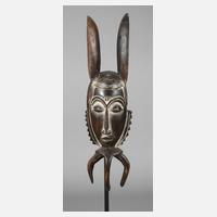 Burkina Faso, 2. Hälfte 20. Jh., der Volksgruppe der Bwa zugeordnet, Holz beschnitzt und mehrfarbig gefasst, später auf Sockel montiert, Maße 27 x 22 cm.