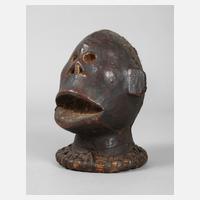 Nigeria, 2. Hälfte 20. Jh., der Volksgruppe der Ekoi zugeordnet, Holz beschnitzt und mit Leder ummantelt, mit Resten menschlichen Haares, H ca. 18 cm.