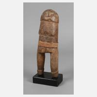 Togo, 2. Hälfte 20. Jh., der Volksgruppe der Losso zugeordnet, abstrakte Ahnenfigur aus grob beschnitztem Holz, später auf Sockel montiert, feine Patina, H ca. 32 cm.