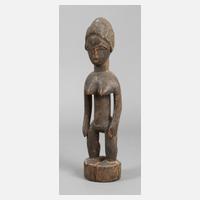 Elfenbeinküste, 2. Hälfte 20. Jh., der Volksgruppe der Baule zugeordnet, Holz beschnitzt, vollplastische Darstellung einer weiblichen Figur, H ca. 32 cm.