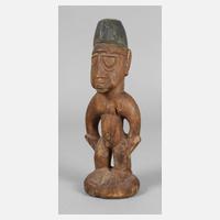 Kongo, Mitte 20. Jh., der Volksgruppe der Suku zugeordnet, Holz beschnitzt, mit Resten alter Farbfassung, später auf Sockel montiert, H ca. 33 cm.