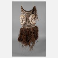 Kongo, Mitte 20. Jh., der Volksgruppe der Lega zugeordnet, flache Maske aus beschnitztem Holz, Maße 34 x 21 cm.