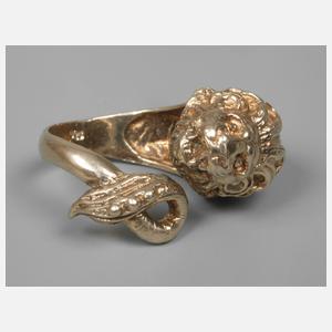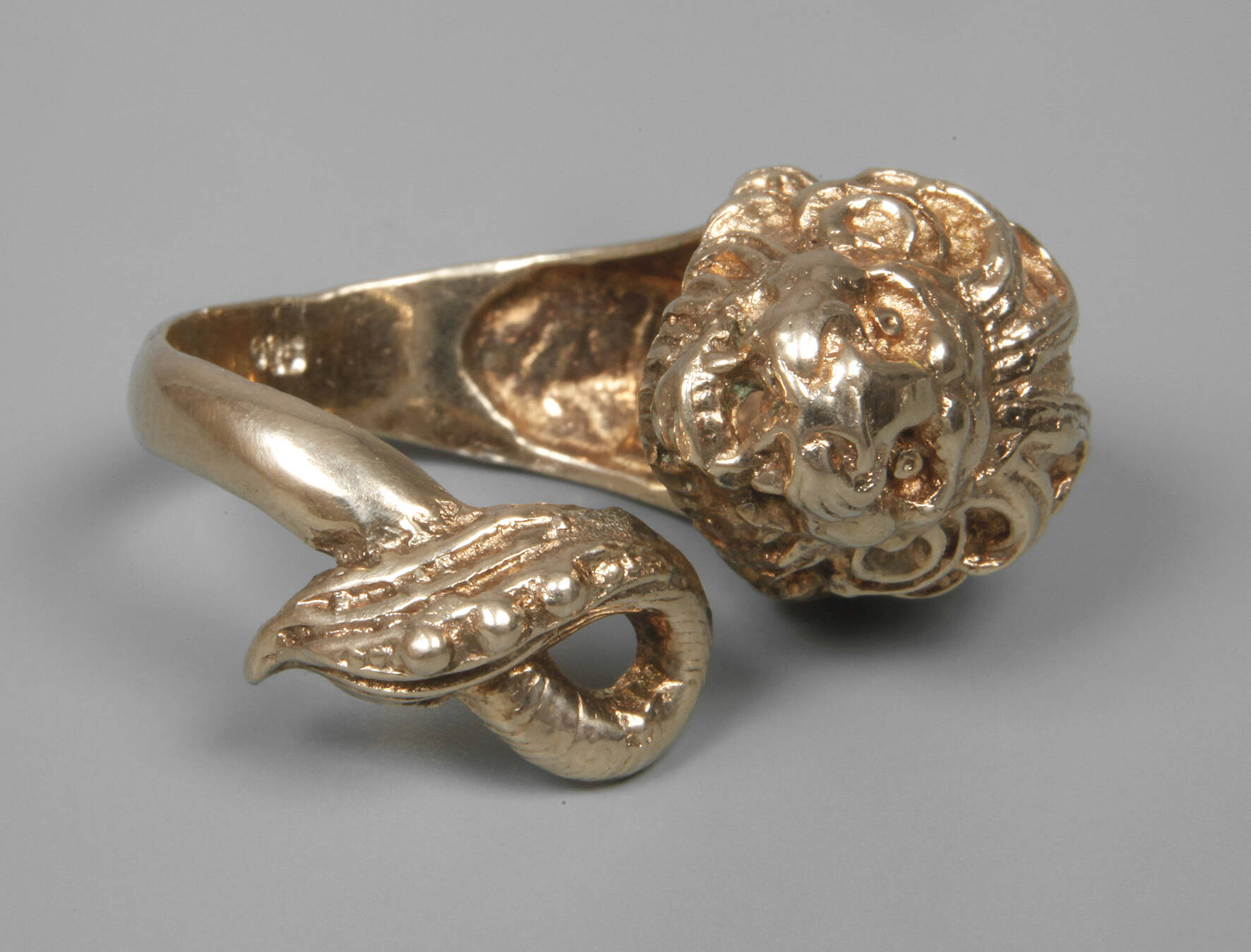 um 1980, Silber vergoldet und gestempelt 835 sowie weitere Punzen, plastisch ausgearbeiteter Löwenkopf und auf der Gegenseite Löwenschwanz, leichte Tragespuren, RW variabel, G ca. 11,4 g.