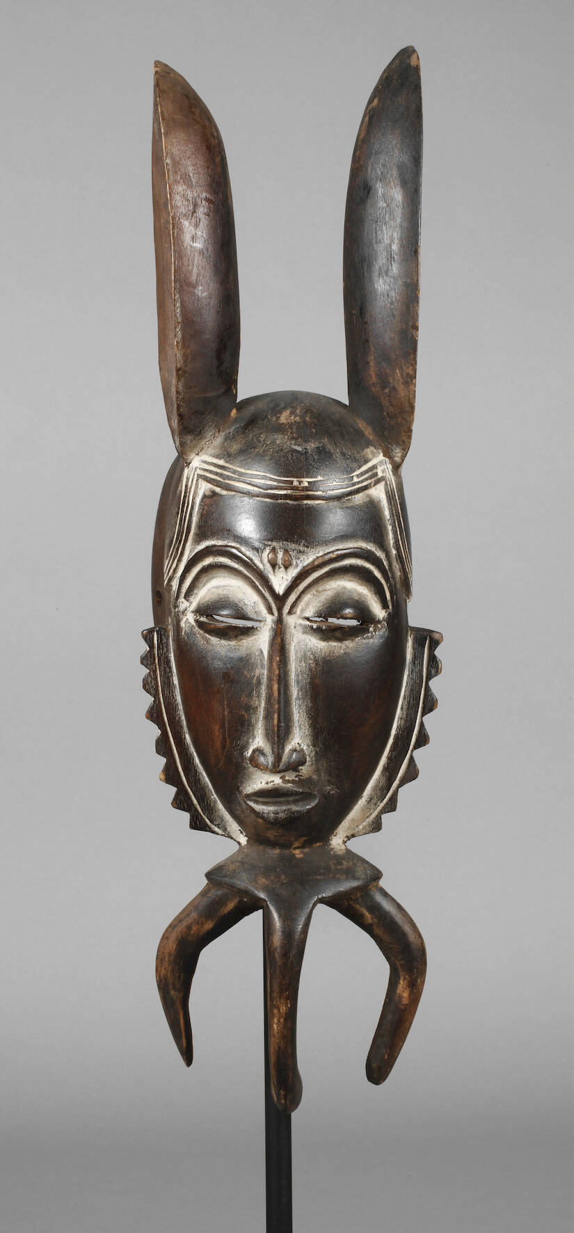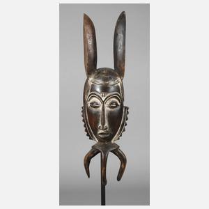 Elfenbeinküste, 2. Hälfte 20. Jh., der Volksgruppe der Yaure zugeordnet, in der Art des Dje-Kults gefertigt, Holz beschnitzt und dunkel gefasst, später auf Sockel montiert, H 44 cm.