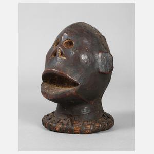 Nigeria, 2. Hälfte 20. Jh., der Volksgruppe der Ekoi zugeordnet, Holz beschnitzt und mit Leder ummantelt, mit Resten menschlichen Haares, H ca. 18 cm.