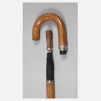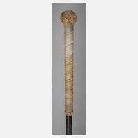 Anfang 20. Jh., textilumwickeltes Griffstück mit knotenartigem Knauf, flexibel gestalteter Schuss, Abschluss aus geschwärztem Weißmetall, Alters- und Gebrauchsspuren, H 91,5 cm.