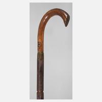 Ende 19. Jh., Griffstück aus Laubholz in Rundhakenform, der Schuss aus facettiertem, brüniertem Eisenguss mit Schraubgewinde und innenliegender Aufnahme, im unteren Teil mit Holz ergänzt, Substanzverluste, restaurierungsbedürftig, H 95 cm.