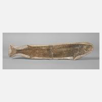 Alter unbestimmt, versteinerter Fisch, Negativform, alt geklebt, L 58 cm.