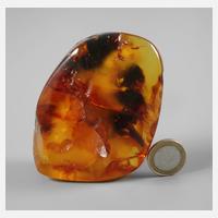 Alter unbestimmt, in dunklem Karamellton, teils mit Einschlüssen, G ca. 131 g, L 12,5 cm.