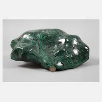 schön gefärbter und polierter Malachit aus dem Kongo, mit ausgeprägter Maserung, Maße ca. 15 x 35 x 26 cm, G ca. 12,05 kg